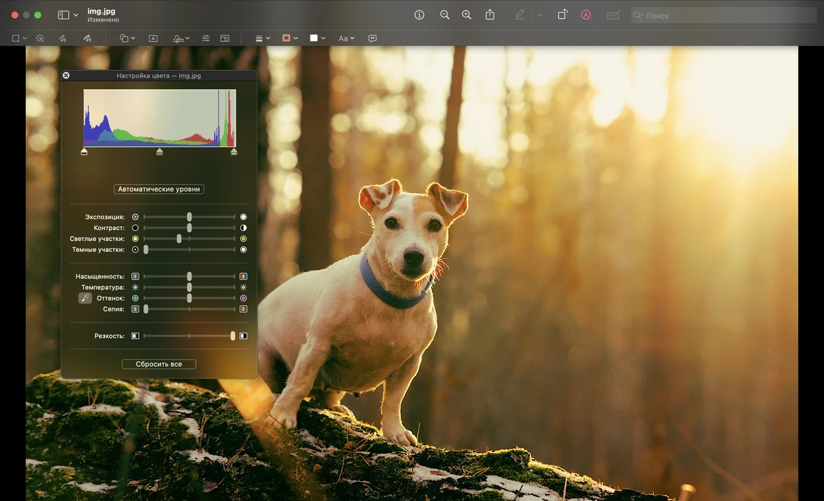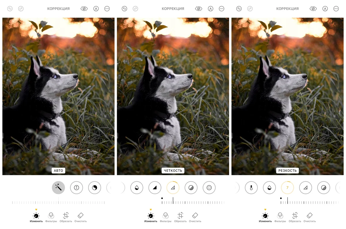 Встроенный софт «Фото» от Apple предлагает базовый функционал для редактирования. Он не предназначен для сложных правок, но позволяет устранить небольшой разблюр и усилить детализацию через ползунки «Резкость» и «Четкость».