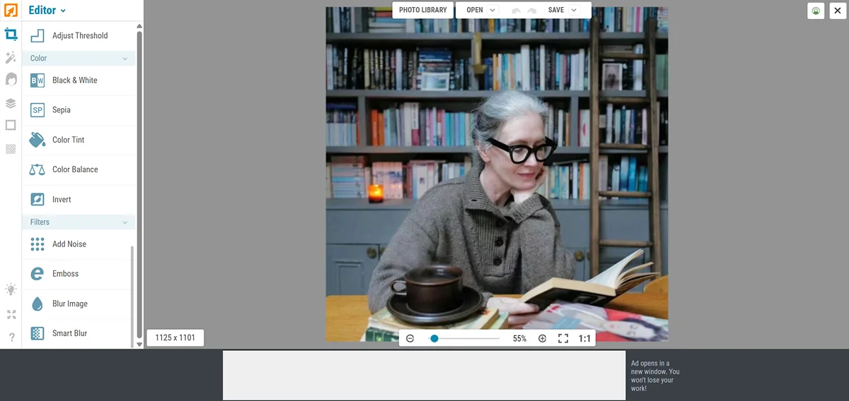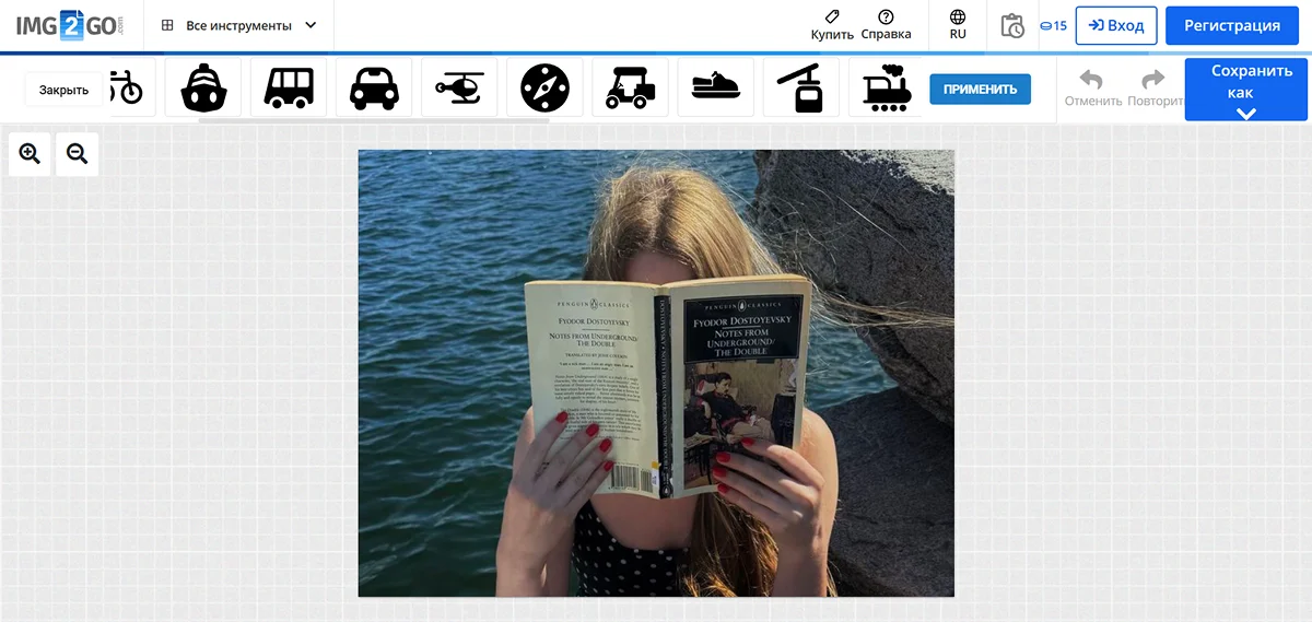 Один из лучших фоторедакторов онлайн с несколькими автоматизированными инструментами. В нем можно убрать задний план на снимке и выполнить колоризацию, раскрасить черно-белые фото. Также есть дополнительные функции для кадрирования, заливки, работы с надписями и рисования. Картинки создаются кистью и геометрическими фигурами. Можно закрыть лицо на фото или другие части кадра пикселизацией.